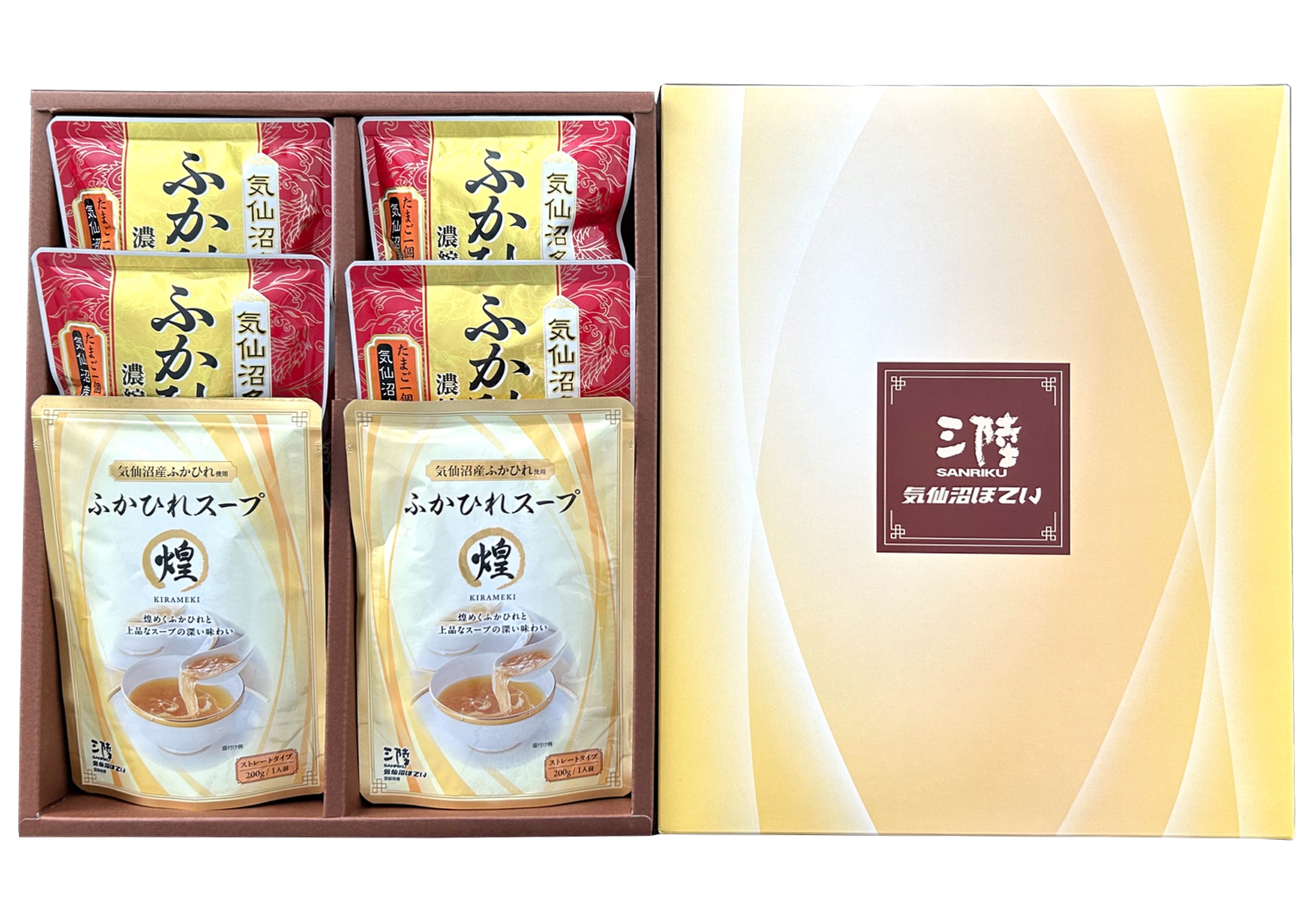 気仙沼産ふかひれを使用した、1セットで2種類の味をお楽しみいただけるふかひれスープギフトです。